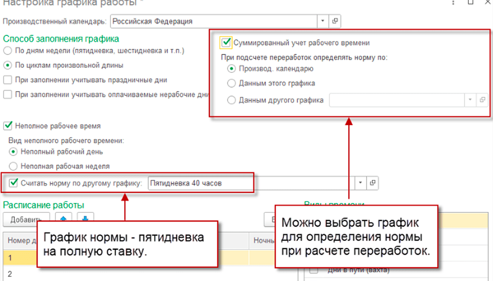 Настройка суммированного учета рабочего времени